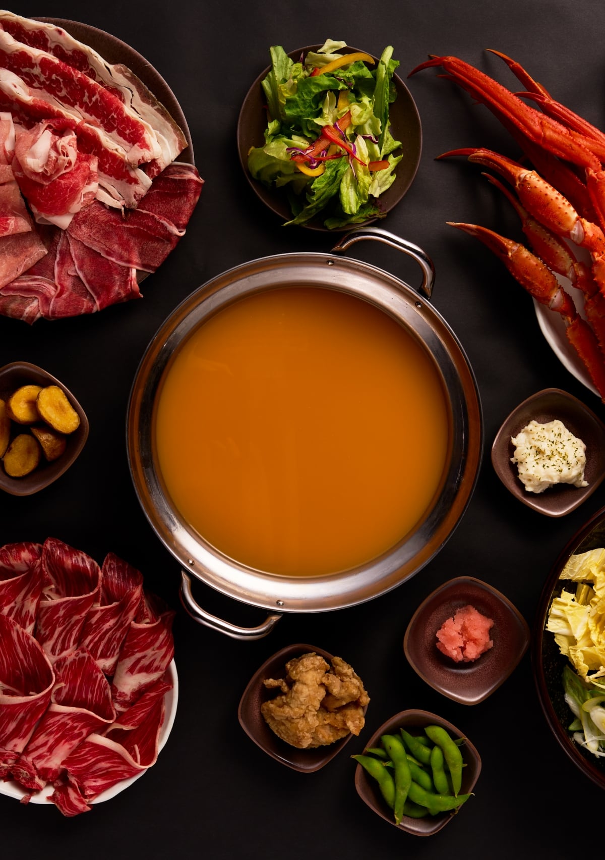 厳選和牛(北海道産)、ズワイガニ、宝冠蟹(ほうかんがに)その他、季節の魚介や名物つみれ、季節の新鮮野菜、フルーツなどのビュッフェをご用意しております。※ラストオーダーは10分前になります。 -